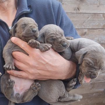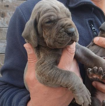 DISPONIBILI cuccioli di alano blu e nero nati il 25/03/2023 dal maschio blu Zephyr dei monti del keraton (xalykanthus dei monti del keraton x sveva dei monti del keraton) nato il 26/03/2021 x la femmina nera Leslie Great Dangerous Dream (vuk sanctus rochus x isabella great dangerous dream) nata il 03/09/2020. I cuccioli verranno ceduti dopo il 70esimo giorno vaccinati, sverminati, microchippati e muniti di pedigree. Siamo presenti su facebook facebook.com/dangerousdreamalani e sul nostro sito www.dangerousdreamalani.com. Allevamento Great Dangerous Dream riconosciuto enci- fci. Rispondiamo solo al telefono, no email. No perditempo.