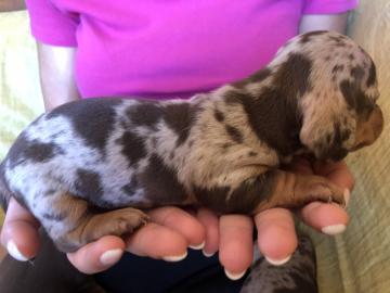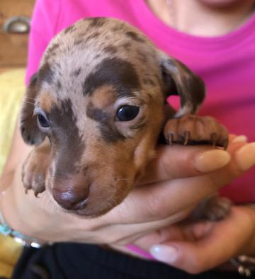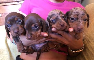 Cucciolata bassotti tedeschi a pelo corto nati il 10/8/2022. Tra Krasnoye Serdtse Zlatozar (kaninchen – marrone focato – campione italiano di bellezza – con DNA depositato) e Camilla della Valle dell’Oppio (nana – arlecchino – vincitrice di varie gare nazionali e internazionali ed esente da qualunque lussazione della rotula). Restano due femmine una arlecchino (2100€), probabilmente kaninchen, l’altra marrone focata (1800€), probabilmente kaninchen o nana, entrambe molto belle e apprezzate dagli esperti che le hanno visionate. I cuccioli saranno consegnati con l’intestazione ENCI della proprietà direttamente all’acquirente, microchip e tutte le pratiche sanitarie previste nei primi due mesi di vita. Per ulteriori info: Alessia 349.25.39.842.