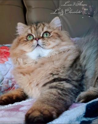 Lady Chocolate è una gattina di 6 mesi, che ama molto il contatto umano. Gioiosa, giocherellona , curiosa , è un esplosione di fusa e dolcezza. Per lei attendo una famiglia dolcemente Speciale , e seriamente interessati. La gattina, è in possesso di pedigree Enfi, e tutte le certificazioni, con doppia vaccinazione. Gradirei presentazione nel messaggio, e successivo colloquio telefonico. NON È IN REGALO! Siamo in Abruzzo provincia di Pescara.