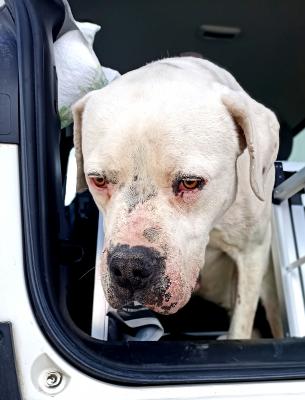 Gli occhi profondi ma lo sguardo spento di chi cerca l'amore che non ha mai avuto. Dogo argentino 5 anni appena compiuti. Tyson è un esplosione di dolcezza, ama le coccole e cerca continuamente contatto..gli basterebbe un angoletto di spazio nel cuore di qualcuno per iniziare a vivere la vita che non ha mai vissuto. Legato ad una catena, salvato e rinchiuso in un box di cemento.. in una lunga e interminabile attesa ...triste sorte per chi ha amore da vendere. No gatti, no cani maschi .. salvate quegli occhietti vi prego. Adottabile ovunque info 3802033957