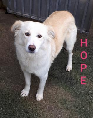 Hope è una bellissima cagnolina femmina meticcia di 10 mesi circa, nata ad aprile 2020 e pesa 15 kg. E’ molto dolce e socievole sia con le persone che con gli altri cani. E’ già vaccinata, sterilizzata, ha il microchip e prima di essere data in adozione le verrà fatto il test leishmania ed ehrlichia. Disponibile servizio navetta su tutta ITALIA.