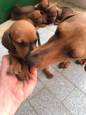 Ultimi di una cucciolata di bassotti cercano casa... Si vedono con Libretto sanitario , sverminazione, il padre ha pelo corto nero la mamma pelo corto fulvo. Solo per persone interessate . Per info Massimiliano 3389935479