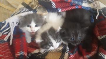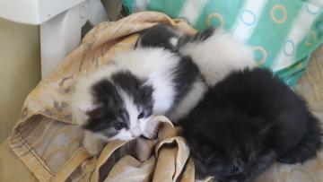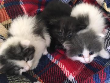 Cerco belle famiglie per questi tre teneri batuffoli a pelo lungo: due femmine (bianche e nere) e un maschietto (grigio). Hanno due mesi e si affidano sverminati e vaccinati. Sono molto docili e buoni.