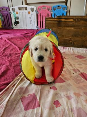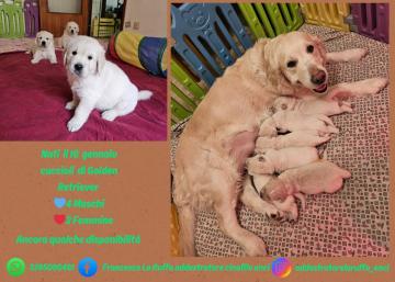 Cuccioli di Golden Retriever nati il 16 gennaio 2025. Cuccioli pronti per raggiungere le loro nuove famiglie per fine Marzo. Verrano consegnati con: •Microchip e Iscrizione anagrafe canina •Vaccinati •Sverminati •Svezzati •Pedigree ENCI. Ancora qualche disponibilità.