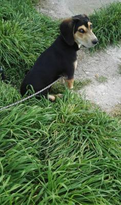 Il suo nome è Ugo, un meticcio di segugio, mantello tricolore, prevalentemente nero, muso e zampette marroni con macchioline bianche su quelle anteriori. È scappato il 24/8 nella zona di Via macchia Morese, S.Tecla.