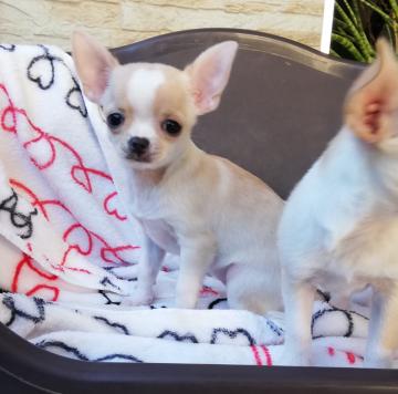 Vendo bellissimie cucciole di chihuahua toy 2 femmine colore bianco e beige Hanno 3mesi Vengono cedute con libretto veterinario, sverminazione, 2 vaccini e microchip Genitori chihuahua di alta genialogia visibili in sede Non hanno pedigree Mando foto e video dopo contatto telefonico o wathapp 3335885972