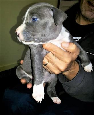 Disponibile splendida cucciolata di amstaff nati il 15 settembre. Sono 5 femmine e due maschi di colore blu e fulvo. Saranno ceduti intorno al 60 giorno di età e muniti di Primo vaccino Primo ciclo vermifugo microchip libretto sanitario iscrizione all' anagrafe canina