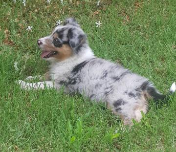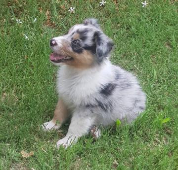 Disponibile cucciola femmina di australian shepherd blue merle di 2 mesi con coda lunga. Genitori visibili ed esenti da displasia dell'anca e dei gomiti e testati geneticamente per le principali patologie di razza. La cucciola viene ceduta con pedigree microchip vaccinazione sverminazioni e garanzia sanitaria