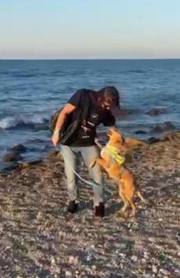 Gaia si spaventa ad ogni movimento brusco, si schiaccia al suolo oppure si rannicchia, sarà stata forse picchiata? Valutatelo voi.
