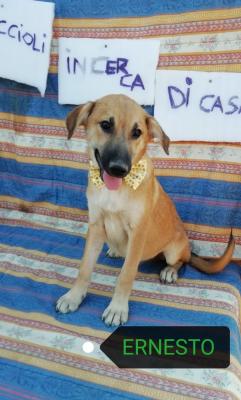 Ciao a tutti mi chiamo Ernesto, sono un cucciolo di soli 4/5 mesi nato a casa di una volontaria del canile, (in quanto canile pieno), che ha aiutato la mia mamma nel parto. Si sa,i canili non sono posti adatti per dei cuccioli...ma nostro malgrado io e i miei fratelli siamo nati in una terra di abbandoni. Siamo stati risparmiati alla strada, ma ci aspettano le gabbie del canile per il resto della nostra vita. Io sono solo un piccolo cagnetto sfortunato, tra tanti come me...ma è troppo sperare che qualcuno mi guardi negli occhi e mi scelga per la vita?Sono una futura taglia media, già vaccinato e sverminato, con microchip. Sono molto dolce affettuoso e amo il contatto con l uomo...quanto vorrei una famiglia!! Mi trovo in Puglia ma per una buon adozione verrò portato in tutto il centro e nord Italia. Se non puoi adottarlo,in alternativa cerchiamo per lui stallo casalingo o adozione a distanza(10 euro al mese). Si affida previa visita preaffido e si pretende la massima serietà.