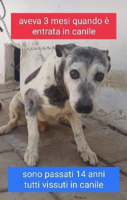 NONNA RITA HA 14 ANNI Rita è nata il 24 Marzo del 2008. Rita è entrata in canile il 24 Giugno del 2008. Aveva solo 3 mesi. Sono passati 14 anni. Tutta la sua vita l’ha passata in quel box. I suoi occhi raccontano le sue paure...raccontano del vuoto di emozioni che la circondano... raccontano che non conosce nulla al di là di quelle sbarre. Si è fatta accarezzare anche se era molto impaurita. Abituata a condividere lo spazio con altri cani sia maschi che femmine. Per lei cerchiamo una famiglia che rispettando il suo dolore voglia almeno non farla morire sola. Adottabile centro nord Italia. Maria 340-5071137