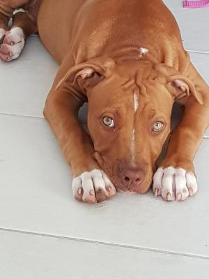 Bellissima cucciola di pitbull american red no Se un po' timida ma già abbituata a fare tutti i suoi bisogni fuori e non in casa