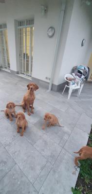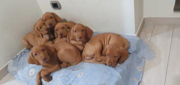 Cucciolata di Bracco Ungherese Vizsla nata il 5 febbraio - ancora qualche cucciolo disponibile i cuccioli verranno venduti con vaccinazione allineata all'età, sverminazione, microchip, iscrizione all'anagrafe canina e denuncia presso l'enci di Modena per l'ottenimento del pedigree Entrambi i genitori hanno il pedigree Il carattere di questa razza e molto socievole ed è fortemente attaccato al padrone, deve fare del movimento quotidianamente- non ama stare rinchiuso in un box o solo in giardino tutto il giorno