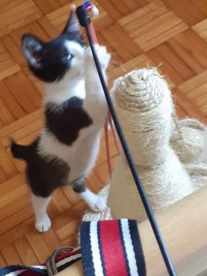 Gattina di razza europea di due mesi dal manto bianco e nero graziosa e simpaticissima, molto socievole sia con le persone sia con gli altri mici, abituata a stare in appartamento cerca adozione presso persone sensibili ed affidabili. Contattera 3473007579, preferibilmente tramite whatsapp