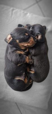 Vendesi bellissimi cuccioli di bassotto nano nero focati. Cedesi ad agosto quando avranno 3 mesi con libretto sanitario, 3 sverminazioni, vaccinato, iscrizione anagrafe canina, microchip e pedigree Enci. Cresciuti a stretto contatto con gli umani, ideale anche per coppie con bambini. Alta genealogia, genitori negativi per patologie ereditarie. Padre pluricampione.