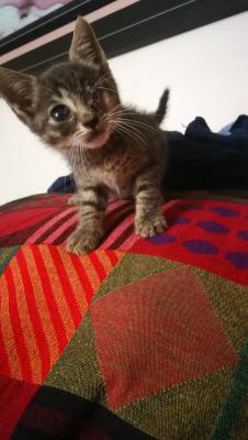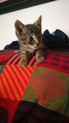 Gattino maschio di due mesi e senza un occhietto cerca URGENTEMENTE casa! Già svezzato completamente, molto socievole, giocherellone con altri animali! Non lasciatevi intimorire dal suo occhietto, ha un cuore dolcissimo pronto a donare amore a tutti!