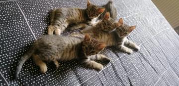 Quattro mici tigrati meravigliosi cercano casa, anche singolarmente, con amanti animali. Sono stati salvati da una brutta situazione, rimessi in forma, spulciati, sverminati, ora hanno circa tre mesi e sono pronti per l'adozione. Due maschietti e due femminucce, abituati alla lettiera e alla vita in casa e a rapportarsi con bambini. Sono sani, affettuosi e socievoli. Per info e adozioni: 3332675402.