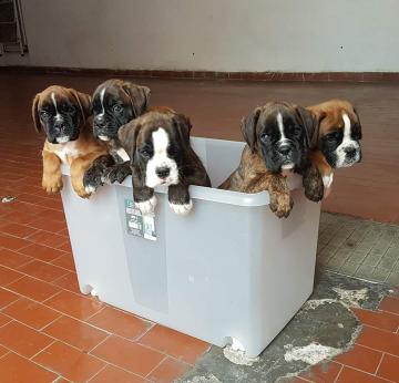 CUCCIOLI DI BOXER Splendidi cuccioli di Boxer. Nati e cresciuti in ambiente domestico e abituati ai bambini. I cuccioli verranno ceduti con pedigree ufficiale ENCI, sverminati e vaccinati dopo il settantesimo giorno. I genitori e i nostri cuccioli sono visibili presso il nostro allevamento amatoriale. Contattare solo se realmente interessati e amanti della razza