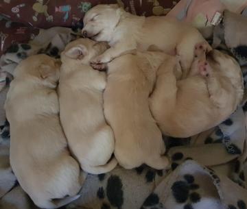 Nati il 4 marzo da madre incrocio maremmano dolcissima, sono 5 splendidi maschietti di futura taglia medio-grande color champagne con sfumatura bianca sulla fronte che aspettano trepidanti di trovare una casa e una famiglia di cui prendersi cura e proteggere. Annuncio rivolto a veri amanti degli animali.