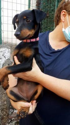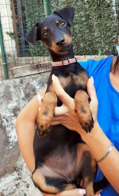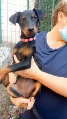 Zaira è una splendida cuccioletta di circa 4 mesi simil pinscher futura taglia entro i 10 kg, trovata abbandonata. La cucciola è molto affettuosa e socievole e si trova in prov. di Roma ma si può portare centro nord Italia, si affida vaccinata e microcippata a persone disponibili a controlli pre e post affido e firma modulo d'adozione. Per informazioni: Anna 3294098913
