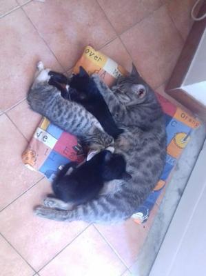 Ciao! Ho 3 gattine nate il 19 agosto 2018 da adottare. Sono svezzate e sverminate dal veterinario. Si tratta di una gattina grigia tigrata con zampette bianche e 2 gattine nere con zampette e musetto bianchi.