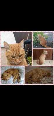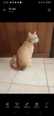 SMARRITO TIMMY Non ha più fatto rientro a casa dal 22/09/2022 in zona CASAL LUMBROSO a ROMA Gatto ROSSO tigrato 5 anni. Maschio sterilizzato. CON MICROCHIP Al momento dello smarrimento portava un collarino celeste che potrebbe aver perso. Taglia media (circa 5,5 kg al momento dello smarrimento). Pelo corto, rosso su tutto il corpo, più chiaro (ma NON bianco) e più lungo sotto la pancia, tigrato soprattutto su zampe e testa, poco sulla schiena, coda ad anelli. Gatto abituato ad uscire ma rimaneva vicino a casa e rientrava sempre almeno la sera. Carattere diffidente, non si fa avvicinare facilmente.