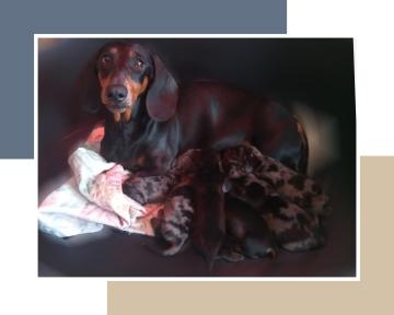 Splendidi bassotti tedeschi pelo corto, padre nano arlecchino e madre standard nero focata. Pedigree microchip vaccini e libretto sanitario. Maschio arlecchino Femmina arlecchino Femmina nero focata Nati il 15 giugno 2023