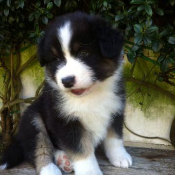 Cuccioli maschi di Australian Shepherd black tricolor da Mamma tricolor e papà blue merle con esame per displasia effettuato su anche e gomiti di entrambi i genitori e registrato con sigillo dagli organi competenti sui pedigree. i genitori sono provenienti dall'allevamento kirieleison ed hanno effettuato i test genetici come da normativa vigente.