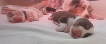 Disponibili 4 stupendi cuccioli maschi di pastore australiano, 3 Red Merle e 1 Red Tricolor, coda lunga, nati l'undici marzo. I genitori dei cuccioli, vincitori di numerosi e prestigiosi titoli, sono testati per le tutte le patologie di razza, sono esenti da displasie anche e gomiti, e geneticamente esenti per oculopatie. I cuccioli crescono in un contesto casalingo a contatto con altri cani, gatti, bimbi e anziani e sono seguiti da un educatore cinofilo riconosciuto APNEC. Vengono ceduti dopo l'undici maggio, socializzati, abituati ai rumori della casa e dell'ambiente circostante, con microchip, iscrizione all'anagrafe canina, vaccini, sverminazioni, visita oculistica ufficiale FSA, pedigree, copie dei pedigree e dei test genetici dei genitori.