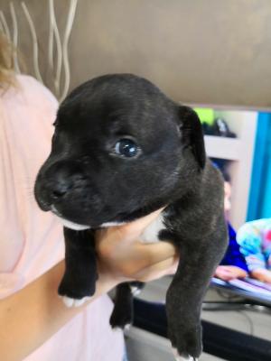 Vendo cuccioli di staffy nati il 31 maggio, cedo con pedigree, microchip, vaccini, sverminazioni a circa 60/70 giorni. I cuccioli sono 2 maschi e una femmina, i maschi neri tigrati a petto bianco mentre la femmina è nera leggermente bianca sul petto. Se realmente interessati contattatemi su whats up al 3383064004. Per ulteriori info o foto. Prezzo trattabile.