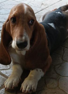 Basset hound femmina 10 mesi...dolce affettuosa...amante degli animali e degli esseri umani....mandare messaggio sul cellulare o chiamare direttamente al 349 837 2987...euro 600