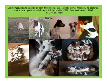 Vendo BELLISSIMI cuccioli di Jack Russell, pelo raso, gamba corta, tricolori, no pedigree, nati in casa, genitori visibili, nati il 2 Settembre 2018. Solo veri amanti. 200€