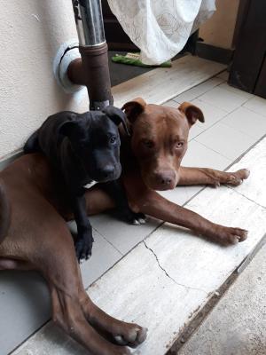Cucciolo pitbull nato il 2 marzo.sverminato,svezzato e con trattamento antiparassitario.genitori e fratello maggiore visibili