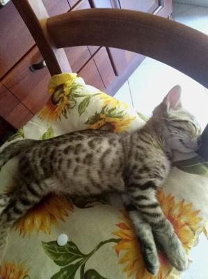 Come d'annuncio vendo ultimo cucciolo di bengala femmina silver nata il 12 aprile, verrà ceduta con libretto sanitario 2 cicli di sverminazione e vaccino, abituata alla lettiera e già svezzata, incluso do anche croccantini + lettiera + piccolo tiragraffi, e guinzaglio leopardato ,nata da papà golden bengal e mamma brown spotted, per maggiori info o foto contattare via whatsapp