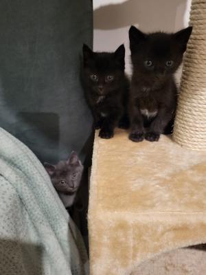 Siamo tre bellissimi micini, siamo nati il 17 marzo, ma ci daranno in adozione quando avremo due mesi, siamo due neri e uno simil certosino, siamo in salute e molto affettuosi, cerchiamo una famiglia che ci possa amare per sempre, chiamateci....ADOZIONE A ROMA E DINTORNI.... per info: franca 3389500597
