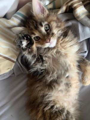 Meravigliosa cucciola di MAINE COON, una femmina tigrata (BLACK TABBY) nata il 4 Giugno 2021 da coppia con Pedigree. La cucciola viene ceduta svezzata, abituata alla lettiera, vaccinata, sverminata e con libretto veterinario a partire da fine Agosto 2021. La cucciola è abituata al contatto con adulti e bambini, è abituata anche al contatto con cani ed altri gatti. La coppia e le precedenti generazioni sono HCM Negativi ed ECG normale come attestato dai Pedigree dei genitori. I cuccioli ed i genitori sono sempre visionabili. Per poter prenotare i cuccioli viene richiesto un acconto simbolico, senza il quale i cuccioli vengono considerati ancora disponibili. Prezzo leggermente trattabile
