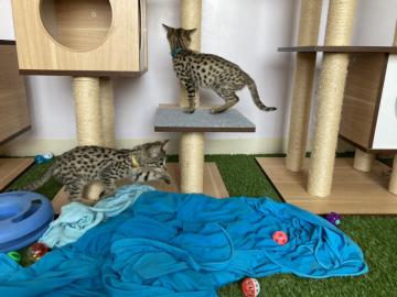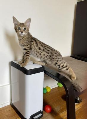 Scoprite i nostri splendidi gattini Savannah, provenienti da linee prestigiose! Esotici, intelligenti e affettuosi, combinano la bellezza selvaggia con la dolcezza di un compagno fedele.