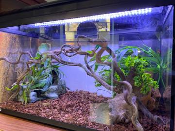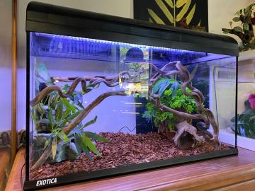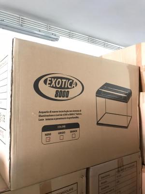 Acquario/terrario in vetro completo di coperchio plastico completamente apribile per facilitare le operazioni di manutenzione. Dimensioni: 80x40x55h Colore: Nero Incluso Led alta profondità 4000k. Il prodotto è NUOVO, ancora IMBALLATO, disponibili di vari pezzi.