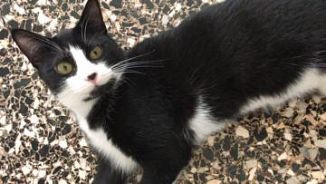 Smarrita gatta 1 anno bianca e nera con cuore nero sul naso