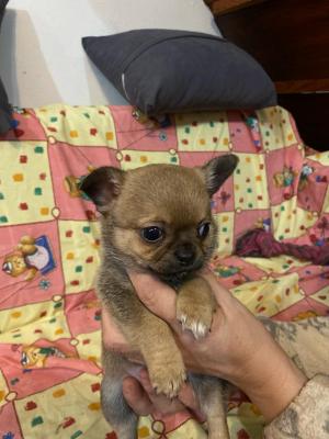 Chihuahua cucciolo maschietto nato in casa mamma pelo corto linea russa musetto schiacciato papà pelo lungo, cucciolo dolcissimo disponibile dal 22 febbraio sarà sverminato visitato dal veterinario microchip inserito richiesta euro 650 vaccino non compreso nel prezzo eventuale spesa a parte visibile levante ligure