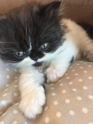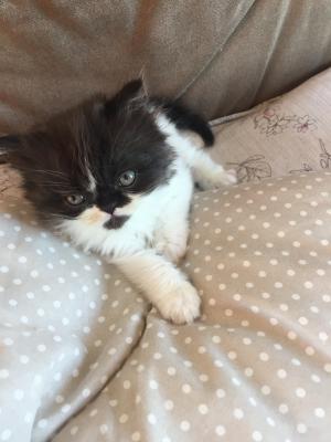 Splendido cucciolo persiano maschio bicolore nero e bianco nato il 09/03/2018. Dolce e coccolone, abituato alla cassettina, allevato in famiglia con amore. Il piccolino verrà consegnato dopo il vaccino, sverminato e con libretto sanitario. Genitori visibili. No pedigree. Cell. ‭366 8253636‬