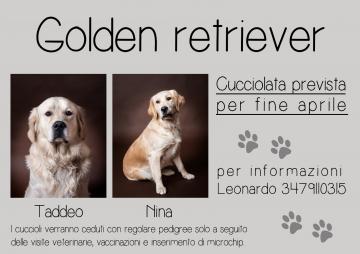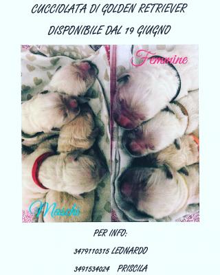 Disponibile da fine Giugno cuccioli di Golden Retriever linea inglese , genitori visibili entrambi miei con ottimo pedigree!!. TUTTI I NOSTRI CUCCIOLI VENGONO CEDUTI NON PRIMA DEI 60 GIORNI MUNITI DI SVERMINAZIONI ,VACCINAZIONE,MICROCHIP, ISCRIZIONE ANAGRAFE CANINA,LIBRETTO SANITARIO, ATTESTATO DI BUONA SALUTE RILASCIATO DAL MEDICO VETERINARIO, PEDEGREE.
