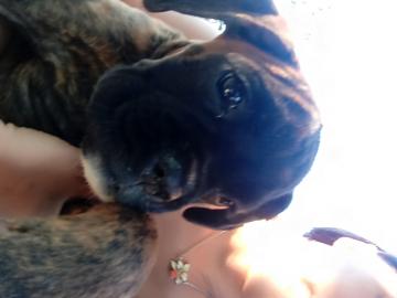 Presso allevamento riconosciuto Enci/FCI disponibile cucciola di boxer femmina tigrata in pronta consegna. Tre mesi, sverminata, con tutto il ciclo vaccinale effettuato, microchip, pedigree, denuncia asl, puppy kit etc.. Genitori visibili in allevamento. Ottimo pedigree e carattere. Per info 333 3882481 In foto cucciola e genitori