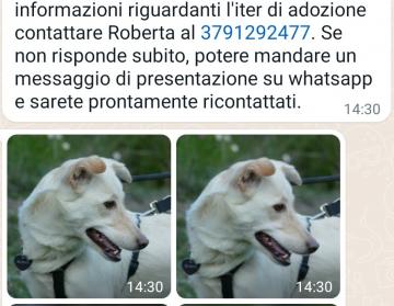 Ciao a tutti,mi chiamo Diletta e sono arrivata a Genova già da tempo in cerca di una famiglia che mi ami e che possa prendersi cura di me per sempre.Sono una cagnolina dal carattere solare,vado d'accordo con i miei simili sia maschi che femmine ma anche con i gattini ed altri animaletti da cortile.In città sono tranquilla al guizaglio anche in zone centrali ed in autobus.Sono una taglia media di circa 20 kg ed ho 4 anni.Adoro giocare in un bel giardino con i miei simili,ma anche avere la possibilità di entrare e di vivere in casa con i miei umani per sentirmi accolta e protetta.L'unico mio problema è che non vedo bene da un occhio in seguito ad aggressione di un mio simile quando ero randagia.Sono sterilizzata,regolarmente vaccinata e in regola con tutto,sono negativa a Leishmania,Erlichia e filariosi,in regola con trattamenti antiparassitari.Per info e adozione contattare Roberta cell 3791292477,se non risponde lasciare messaggio whatsapp e sarete richiamati,grazie
