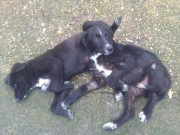 Due cuccioli di 5 mesi circa,futura taglia media,neri,fratello e sorella,soli al mondo ed anche brutarelli…soprattutto in foto…dal vivo sono meno bruttini.