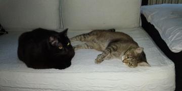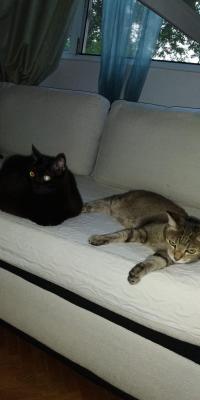 Siamo LOLA (la nerina) e SHAKIRA (la tigrata) due bellissime gattine di 14 anni: nonostante l'età siamo sanissime! Entrambe sterilizzate, vaccinate e microchippate.