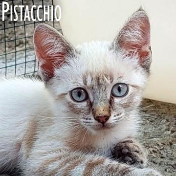 Ciao, mi chiamo Pistacchio e ho uno stupendo pelo color panna con screziature caffelatte. Come vedete sono un misto di tutta dolcezza e bontà Sono nato a metà giugno e sono ancora un cucciolino... adottami subito per non perderti questi momenti indimenticabili in cui da palla di pelo mi trasformo in un magnifico micio! Sono davvero un coccolone e ho tanto bisogno di qualcuno che mi ami!