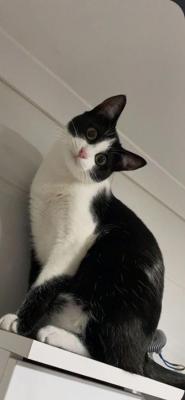 Micia bianca/nera buonissima TRIPODE aspetta casa.MILANO