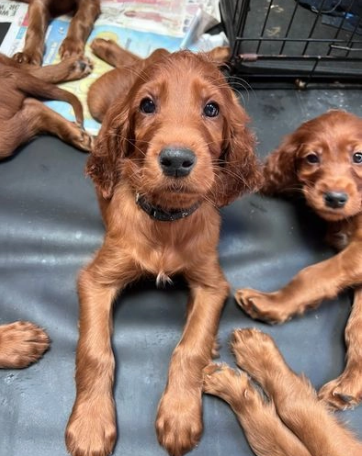 Simpatico Cuccioli di Setter Irlandese Abbiamo 2 maschi e 2 femmine Sono stati microchippati, vaccinati. cuccioli verranno consegnati a 75 giorno di vita con libretto sanitario , vaccino , microchip, sverminazioni ,pedigree