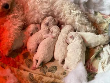 Cuccioli di bolognese disponibili a fine giugno, con pedigree, vaccinazioni, sverminazioni e microchip. Per informazioni cell. 351 7895881